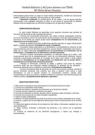Este documento presenta una unidad didáctica sobre nutrición para alumnos de 3o de ESO. La unidad explica los conceptos básicos de nutrición, incluyendo los órganos y sistemas involucrados, los nutrientes principales, y la importancia de una dieta equilibrada. La unidad también cubre temas como etiquetado de alimentos, alimentos transgénicos, y hábitos alimenticios saludables. Se proponen varias actividades prácticas para que los estudiantes desarrollen un entendimiento completo de los concept