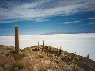 El Salar de Uyuni en Bolivia es el mayor desierto de sal del mundo y el mayor espejo natural, cubriendo un área de 12.000 km2. Durante la estación húmeda, las lluvias dejan una fina capa de agua sobre la superficie que refleja el cielo como un espejo, creando uno de los espectáculos naturales más hermosos de la Tierra. El Salar de Uyuni también contiene grandes reservas de litio y otros minerales importantes que son explotados diariamente.