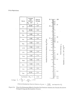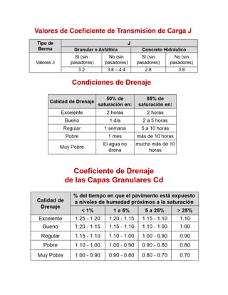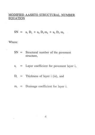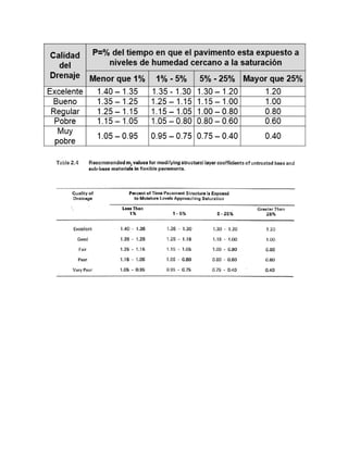 Este documento presenta los pasos para diseñar pavimentos flexibles y rígidos usando el método AASHTO 1993. Incluye secciones para requisitos de diseño, propiedades de materiales, cálculo del número estructural, y estructuración del pavimento. Proporciona una hoja de cálculo para un proyecto de ejemplo que calcula el espesor requerido de la losa y capas del pavimento.