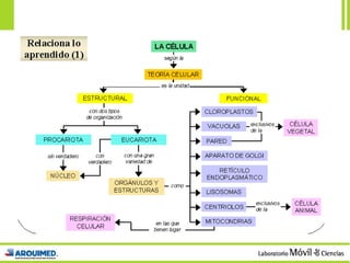 El documento describe la historia y características básicas de las células. Explica que las células son la unidad básica de la vida y fueron descubiertas en el siglo XVII. Luego, en el siglo XIX, Schleiden y Schwann formularon la teoría celular de que todos los organismos están compuestos de células y que las células provienen de otras células preexistentes. Finalmente, el documento describe algunos tipos de células y sus estructuras observadas con microscopios electrónicos modernos.