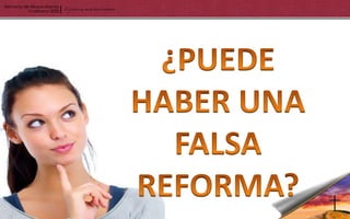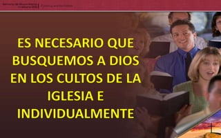 El documento habla sobre la necesidad de buscar un verdadero reavivamiento espiritual a través de la humildad, la oración, el arrepentimiento y apartándose de los malos caminos. Cita pasajes bíblicos que describen las condiciones que Dios estableció para su pueblo y la importancia de someter el juicio individual a la autoridad de la iglesia.