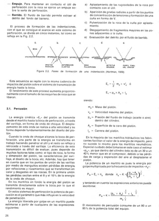 Este documento describe los fundamentos de la perforación rotopercutiva. Explica que este método se basa en la combinación de percusión, rotación, empuje y barrido. Detalla los dos tipos de martillos (en cabeza y en fondo), y cómo se transmite la energía de impacto a través del varillaje. Resume las ventajas de este sistema y los campos donde se utiliza comúnmente.