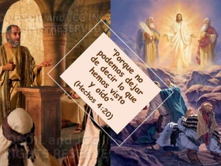 El documento presenta varios ejemplos bíblicos de personas que dieron testimonio de cómo Jesús transformó sus vidas, incluyendo al endemoniado, María, los apóstoles Pedro y Juan, y Pablo. Alienta al lector a compartir su propia historia de conversión y experiencia con Jesús con otros, ya que dar testimonio personal de la obra de Dios en uno mismo es poderoso para llevar a otros a la fe.