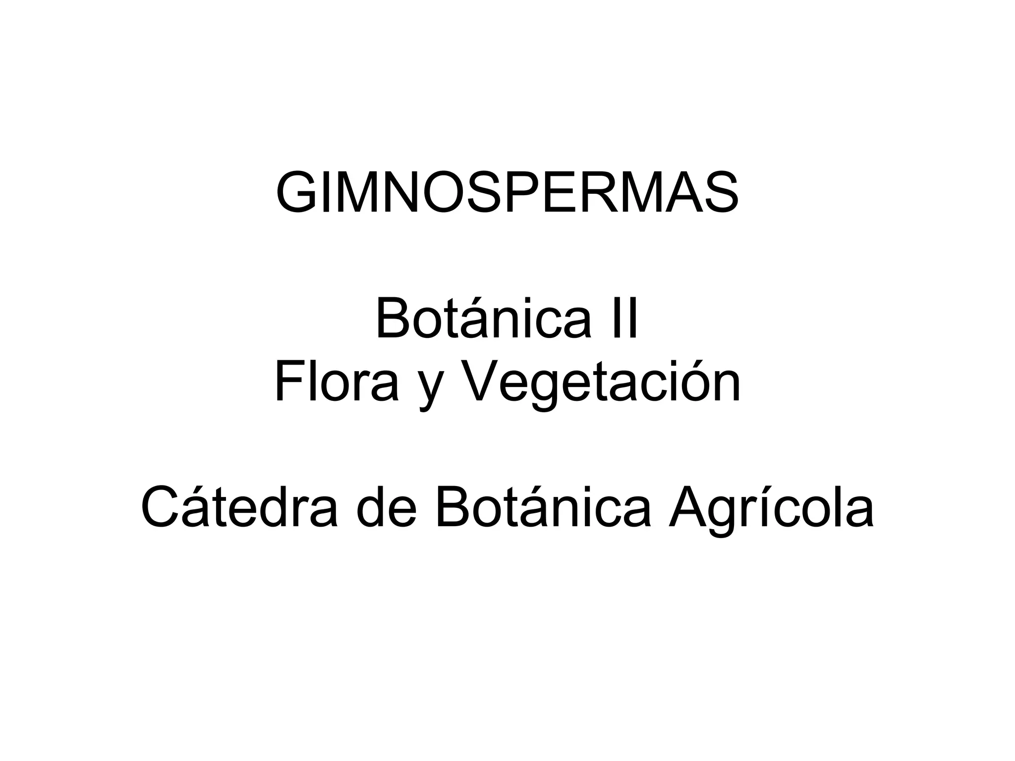 El documento describe las características de los gimnospermas, incluyendo sus hojas, flores y semillas. Se dividen en siete órdenes: Cicadales, Ginkgoales, Coniferales, Gnetales, Taxales, Cupresales y Taxodiales. Cada orden tiene características distintivas como hojas simples o compuestas, presencia o ausencia de canales resiníferos, y si sus semillas tienen o no envolturas carnosas. El documento proporciona detalles sobre varias familias y géneros represent