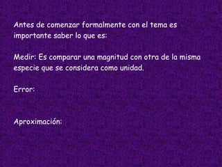 Este documento trata sobre los errores de aproximación. Existen dos tipos de errores: por defecto cuando el valor obtenido es menor al real, y por exceso cuando es mayor. Las fuentes que provocan estos errores son: los datos de entrada cuando tienen errores, los procedimientos cuando introducen errores al facilitar cálculos, y la salida cuando se redondea o trunca resultados.