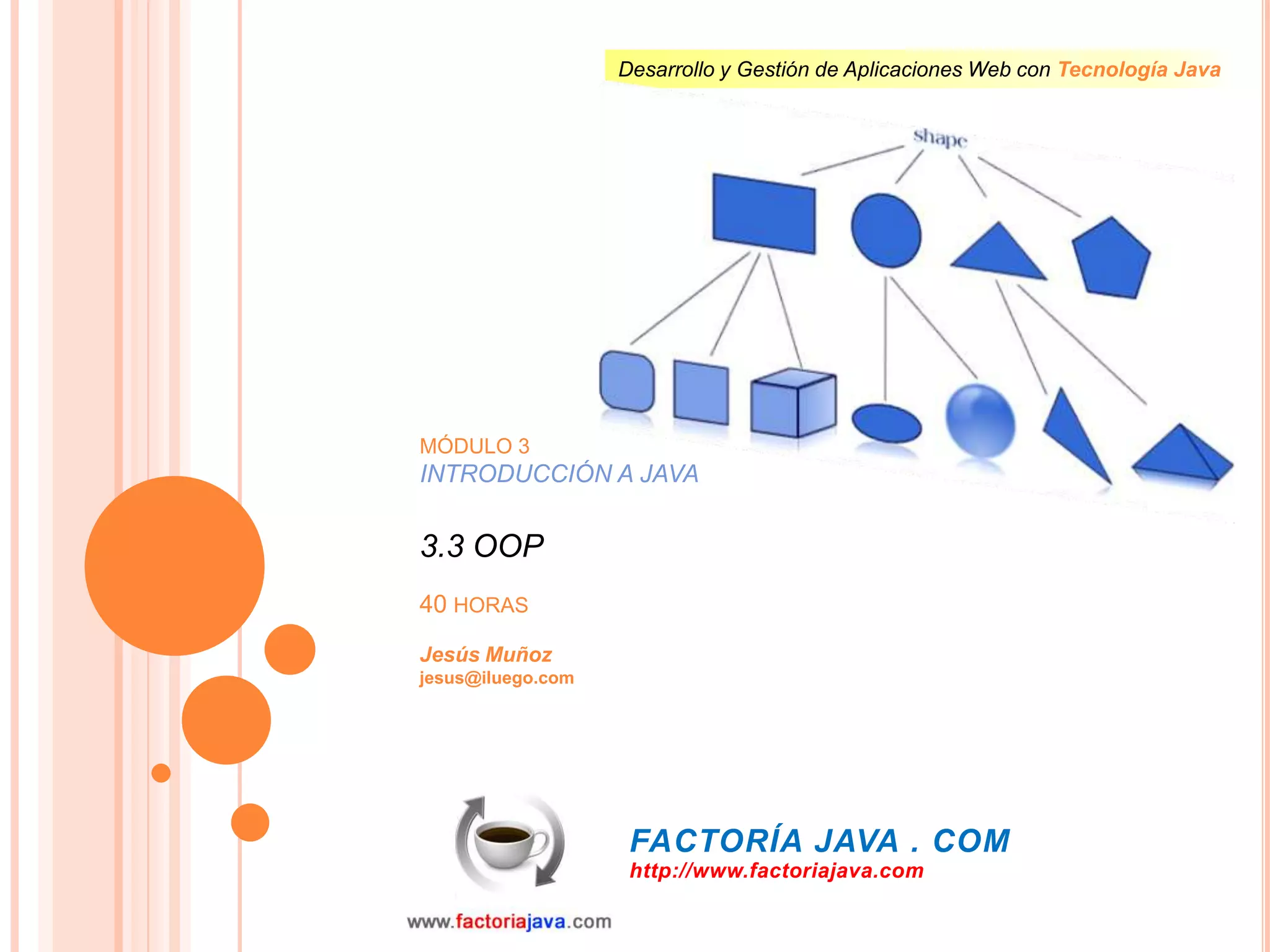 El documento es un módulo de 40 horas sobre introducción a Java y programación orientada a objetos (OOP), que cubre conceptos como clases, objetos, herencia, polimorfismo y manejo de excepciones. Se detalla la creación de instancias, métodos, el paso de parámetros y el alcance de las variables, junto con ejemplos prácticos y explicaciones de las clases envolventes. Al final del módulo, los alumnos deben ser capaces de aplicar estos conceptos en la programación utilizando Java.
