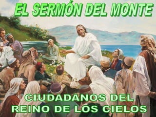 Este documento resume las bienaventuranzas que Jesús pronunció en el Sermón de la Montaña según el Evangelio de Mateo. Jesús describió nueve bienaventuranzas que incluyen a los pobres en espíritu, los que lloran, los mansos, los que tienen hambre y sed de justicia, los misericordiosos, los de limpio corazón, los pacificadores y los que padecen persecución por causa de la justicia. Jesús también enseñó sobre el carácter de los ciudadanos del reino de los c