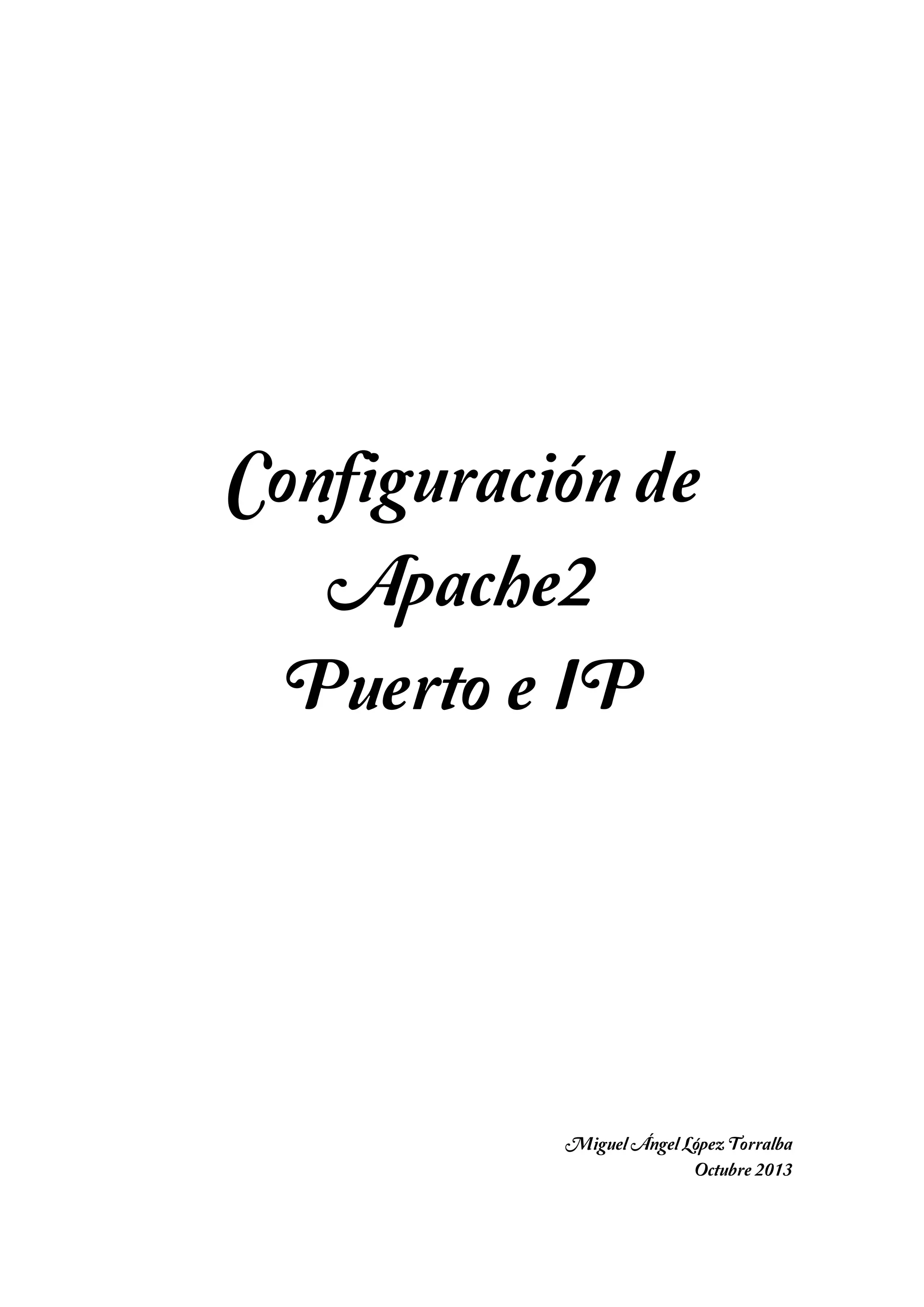 Este documento describe cómo configurar Apache2 para escuchar en puertos específicos y direcciones IP. Explica editar el archivo httpd.conf para definir un nuevo puerto, agregar una entrada en ports.conf para permitir que Apache escuche en ese puerto, y modificar el archivo de sitio disponible para apuntar al directorio correcto. También cubre cómo agregar un VirtualHost con una dirección IP específica en httpd.conf para habilitar la entrada por IP y reiniciar el servicio Apache.