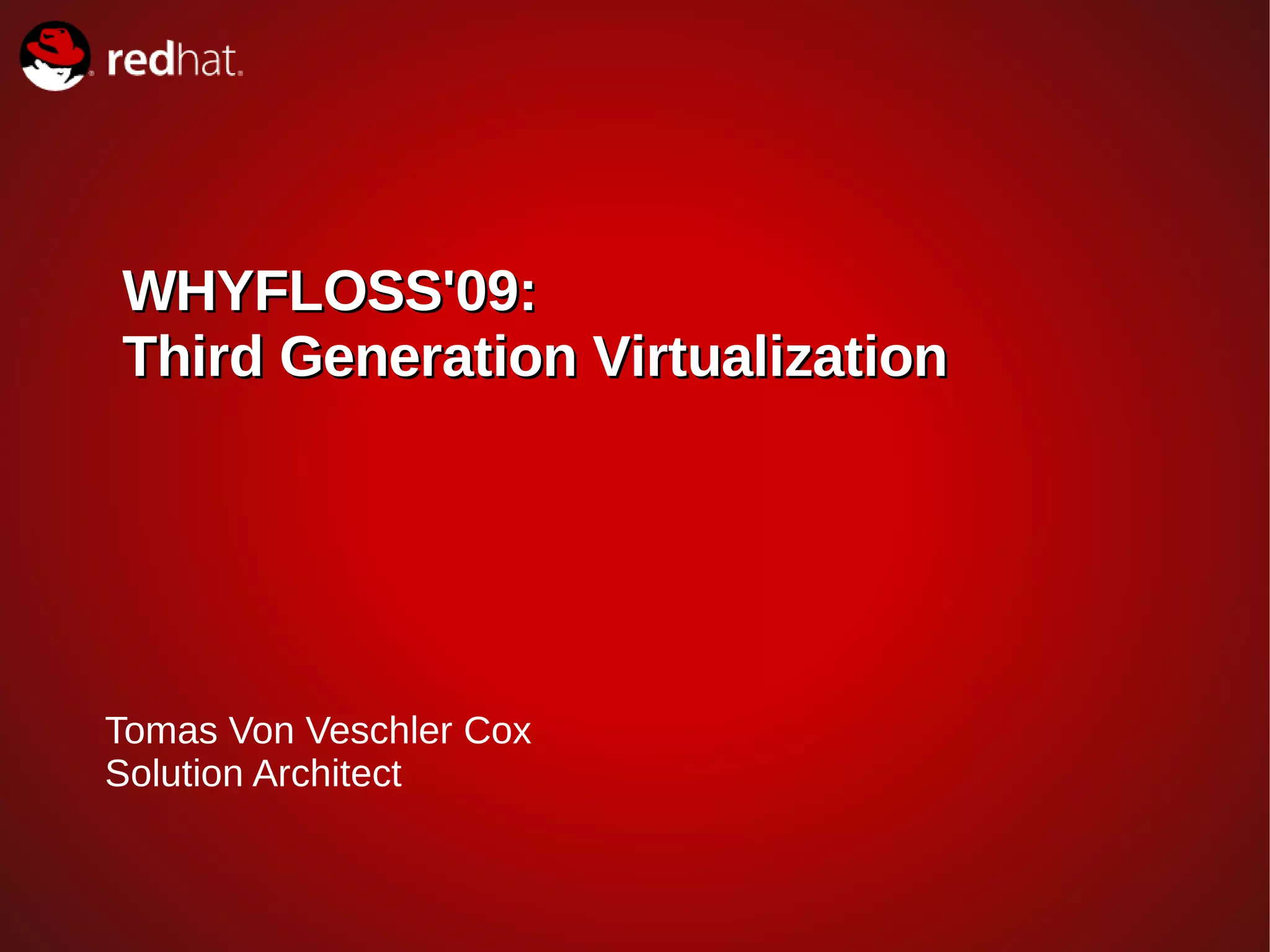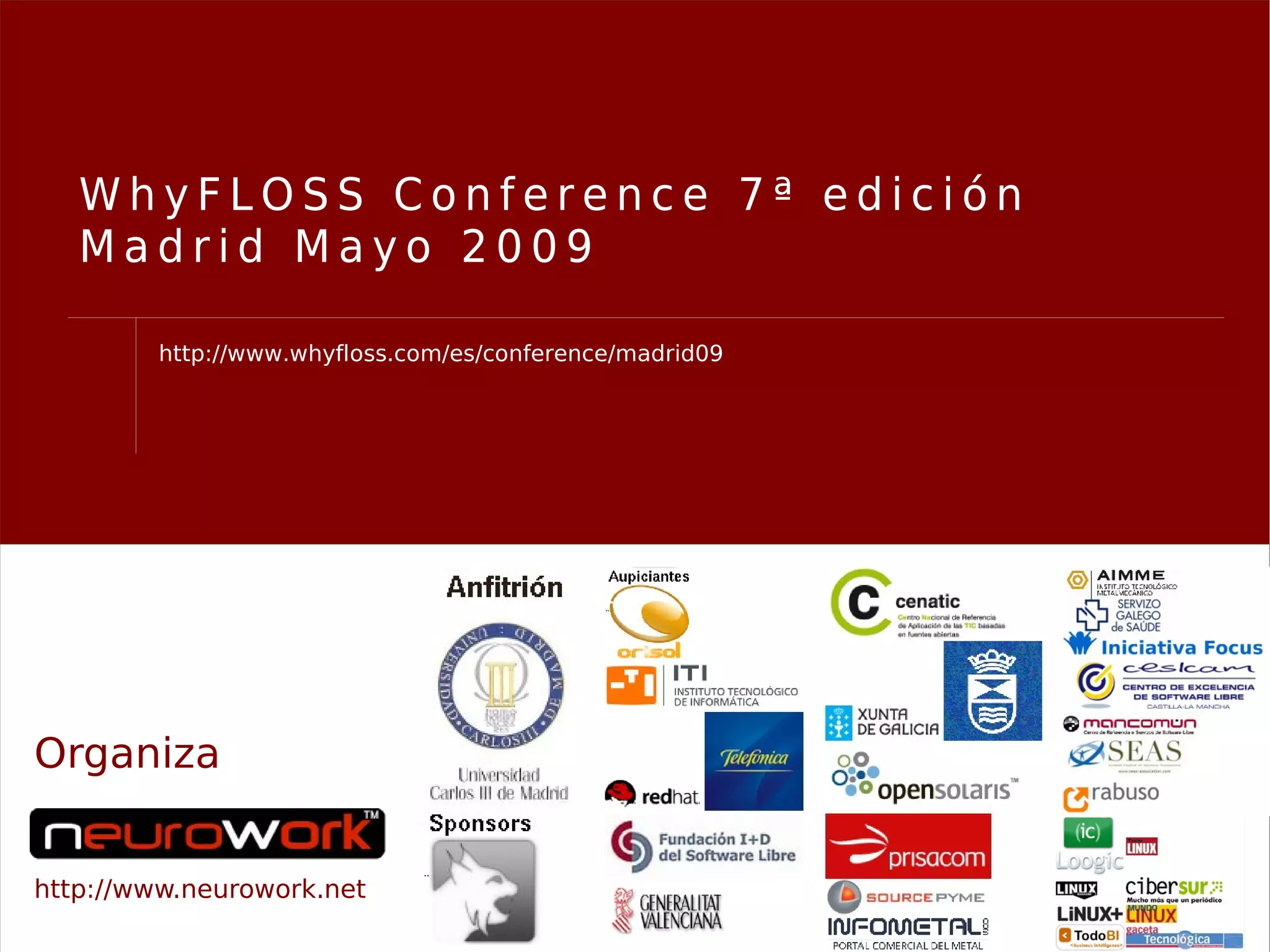 La conferencia whyfloss'09, organizada en Madrid en mayo de 2009, se centró en la evolución de la virtualización de x86, abarcando las generaciones de virtualización desde la primera hasta la tercera. Tomas von Veschler presentó temas como la para-virtualización y la virtualización basada en hardware, así como tecnologías asociadas como KVM y RHEV. El evento también incluyó debates abiertos y sesiones de preguntas y respuestas sobre virtualización y dispositivos relacionados.