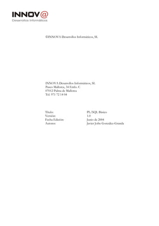 Este documento introduce PL/SQL y describe sus elementos básicos como unidades léxicas, delimitadores, identificadores, literales y tipos de datos. Explica que PL/SQL permite definir y manipular diferentes tipos de datos, crear procedimientos y funciones, e interactuar con Oracle mediante SQL.