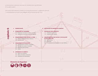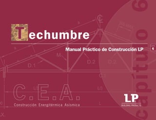 Este documento describe los diferentes elementos y procedimientos para la construcción de techumbres. Explica las estructuras principales de techumbre como cerchas y tijerales, e incluye detalles sobre materiales, herramientas requeridas y el proceso de instalación de techos. Además, define términos clave como cumbrera, limatesa y faldón para describir las diferentes formas de techumbres.