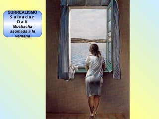 El documento presenta una serie de diapositivas sobre movimientos artísticos como el surrealismo y la abstracción entre 1914 y 1939, incluyendo obras de Salvador Dalí, René Magritte, Paul Klee, Piet Mondrian, y sobre el estilo internacional con ejemplos de Frank Lloyd Wright, Mies van der Rohe y Le Corbusier.