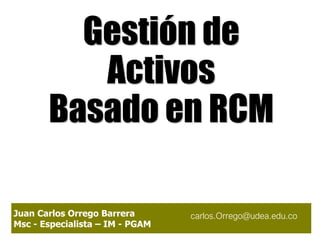 Este documento presenta conceptos básicos sobre la gestión de activos basada en RCM (Mantenimiento Centrado en la Confiabilidad). Explica que el proceso RCM evalúa las consecuencias de cada modo de falla, distinguiendo entre consecuencias de seguridad, ambientales, operacionales y no operacionales. También señala que las consecuencias de falla son más importantes que las características técnicas, por lo que el objetivo es evitar y reducir las consecuencias en lugar de anticipar o prevenir las fallas.