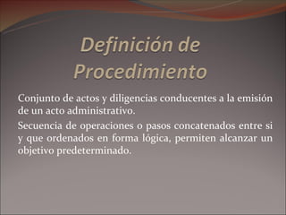 Este documento describe la diferencia entre procedimientos administrativos y servicios, e incluye ejemplos de cada uno. También explica el inventario de procedimientos administrativos, la metodología para simplificarlos, y aspectos relevantes sobre el TUPA.