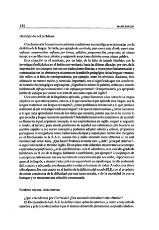 Este documento discute la confusión terminológica en la didáctica del español como lengua extranjera debido a la importación de conceptos del inglés sin traducciones precisas al español. Propone revisar términos como "modelos", "currículos", "enfoques" y "métodos" y comparar su uso con la bibliografía pedagógica española. El autor argumenta que el concepto de "currículo" aporta flexibilidad a los planes de estudio y enfatiza la resolución de problemas en la pr