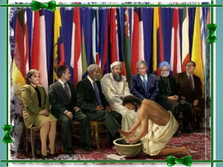 Este documento discute tres ritos ordenados por Jesús para su iglesia: el bautismo, el rito de humildad o lavamiento de pies, y la Santa Cena. Explica que estos ritos simbolizan eventos espirituales importantes como el nacimiento a una nueva vida en Cristo, el ejemplo de humildad y servicio, y la conmemoración de la muerte y segunda venida de Jesús. El documento enfatiza que estos ritos no tienen poder en sí mismos, sino que son órdenes divinas que ayudan a los cre