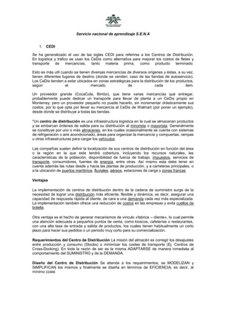 Un centro de distribución (CEDI) es una infraestructura logística donde se almacenan y embarcan productos para su distribución a minoristas y mayoristas. En Colombia, los CEDIs juegan un papel importante al almacenar grandes cantidades de mercancía de diferentes empresas y distribuir pedidos de forma eficiente a cadenas minoristas en todo el país, mejorando así el servicio al cliente y acelerando los procesos de almacenamiento y distribución.