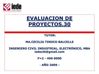 Este documento presenta un caso de evaluación de proyecto para un colegio llamado Colegio Platónico. Incluye detalles sobre la inversión inicial requerida, costos operacionales, ingresos proyectados, flujos de caja proyectados para 3 años y cálculos de valor neto actual y tasa interna de retorno para evaluar la viabilidad del proyecto.