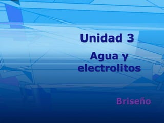El documento trata sobre la importancia biológica del agua. Explica que el agua constituye el 70-90% del peso de la mayoría de los seres vivos y es esencial para la vida. También describe las propiedades químicas y físicas del agua y cómo estas propiedades son importantes para la vida. Además, señala que el agua es necesaria para el mantenimiento de la homeostasis a través de la distribución del agua en el cuerpo y el control del pH y electrolitos.