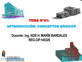 El documento aborda los conceptos básicos de la ingeniería sismorresistente, que busca garantizar el comportamiento adecuado de las construcciones durante los sismos mediante la cuantificación de riesgos. Se analizan definiciones clave de sismicidad, incluyendo intensidad, magnitud y probabilidad de ocurrencia, así como la importancia de la sismología y las instituciones que la estudian. Además, se discuten términos relacionados con fallas geológicas y la zonificación de riesgos sísmicos.