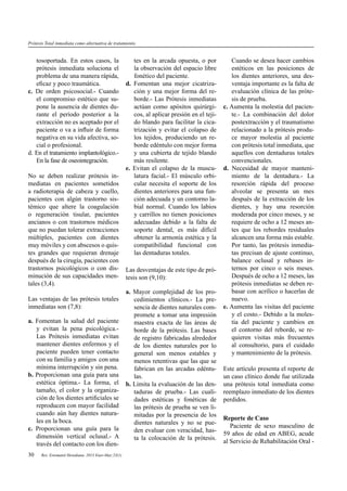 Este documento presenta el reporte de un caso clínico donde se utilizó una prótesis total inmediata como reemplazo inmediato de los dientes perdidos. Se describe el caso de un paciente de 59 años con 14 dientes con enfermedad periodontal severa. Se tomó una impresión con hidrocoloide reversible y se fabricaron modelos definitivos de yeso. Sobre estos modelos se construyeron las placas bases y rodetes de oclusión para las prótesis totales inmediatas superior e inferior del paciente. El objetivo fue proporcionar una transición
