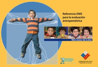 Este documento presenta 7 gráficos e instrucciones para evaluar el crecimiento de niños menores de 6 años utilizando la referencia de crecimiento de la OMS de 2006. Los gráficos muestran las relaciones peso-edad, longitud-edad, peso-longitud y peso-estatura para monitorear el estado nutricional. El documento explica cómo usar los gráficos para clasificar a los niños y dar seguimiento a su crecimiento a lo largo del tiempo.