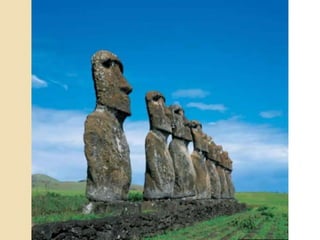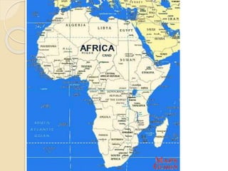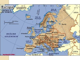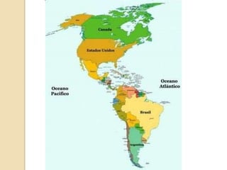 El documento presenta breves descripciones de los cinco continentes principales: África, Europa, América, Oceanía y Asia. Se proporciona información básica sobre cada uno, identificando a África como el tercer continente más grande, a Europa como uno de los más ricos, y describiendo a América como "las nuevas tierras".