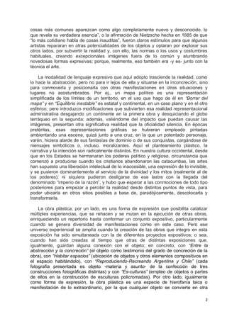 El documento explora cómo los objetos, como la rosa o la manzana, trascienden su significado literal al evocar emociones e imágenes mentales, especialmente en el contexto del arte. Se discuten diversas técnicas artísticas y su evolución desde el Renacimiento hasta el presente, destacando el uso de la fotografía y el collage para transformar la percepción de los objetos en obras de arte significativas. La exposición presenta treinta construcciones fotográficas que buscan provocar y sorprender al espectador, invitándolo a ver lo cotidiano desde perspectivas nuevas y creativas.
