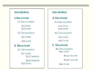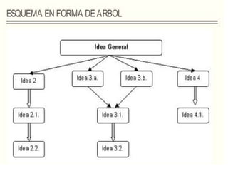 Un esquema es una representación gráfica que permite organizar y jerarquizar la información de manera clara y concisa. Realizar esquemas tiene varias ventajas como facilitar la comprensión y retención de conceptos, así como su posterior explicación. Existen diferentes tipos de esquemas que pueden elaborarse siguiendo una serie de pasos para plasmar de forma efectiva las ideas principales de un tema.