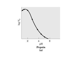 Este documento resume conceptos clave sobre la cinética enzimática, incluyendo el modelo de Michaelis-Menten, la ecuación de Michaelis-Menten, los tipos de inhibición enzimática (competitiva, no competitiva y acompetitiva), y factores que afectan la actividad enzimática como el pH, la temperatura y la presencia de inhibidores. También describe parámetros cinéticos importantes como Km, Vmax, Kcat y la eficiencia catalítica.