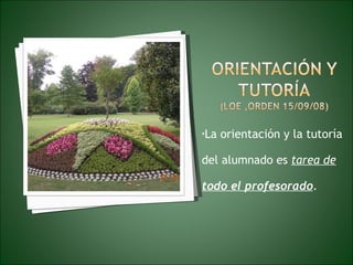 El documento describe las responsabilidades de los tutores en la orientación educativa y profesional de los estudiantes. Los tutores deben contribuir a la personalización del aprendizaje de cada estudiante, mediar entre estudiantes, profesores y familias, y garantizar que cada estudiante tenga un tutor designado. También deben desarrollar programas para mejorar la convivencia, los hábitos de estudio y la toma de decisiones, e involucrar a las familias en la vida escolar.