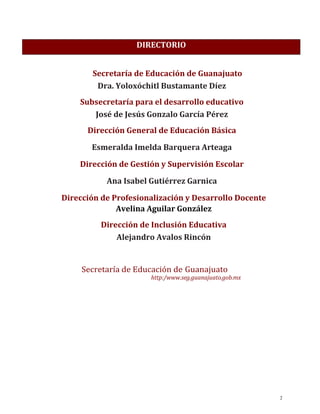 Este documento presenta el modelo curricular CONCUPRISE de la Secretaría de Educación de Guanajuato. Describe la estructura y características del modelo, el cual ofrece una concreción de los contenidos básicos e imprescindibles del currículo oficial para adaptarse al contexto de la pandemia de COVID-19. El modelo busca apoyar a los maestros priorizando los aprendizajes esperados fundamentales y permitiendo transitar de manera efectiva entre grados en un periodo escolar más corto.