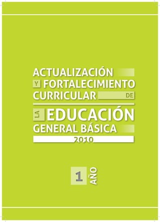 Este documento presenta la actualización y fortalecimiento curricular de la educación general básica en Ecuador. Explica que se basa en la evaluación del currículo de 1996 y en experiencias docentes, con el objetivo de mejorar la calidad educativa. Describe las bases pedagógicas del nuevo diseño curricular, como el desarrollo de la condición humana, la formación de ciudadanos y el aprendizaje significativo. Además, presenta la estructura del currículo actualizado, incluyendo objetivos educativos, bloques curriculares,