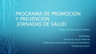 Este documento presenta una propuesta de programa de promoción y prevención de la salud que incluye servicios como manejo del estrés, nutrición saludable, tamizajes de mama y visual, anticoncepción, higiene oral, prevención de cáncer cérvico-uterino, cuidado de la piel y vacunación. Los costos totales de los servicios principales son de $2,000,000 y los servicios adicionales tienen costos individuales que varían entre $25,000 y $450,000.