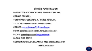 Este documento presenta las diferentes fases y componentes de la práctica profesional de estudiantes de magisterio en Venezuela. Describe cuatro fases de la práctica distribuidas a lo largo de la carrera, con diferentes objetivos y unidades de crédito asignadas a cada una. También presenta el plan de evaluación de la fase de Integración Docencia-Administración, incluyendo actividades, objetivos, evaluaciones e indicadores. El documento provee información detallada sobre la implementación de la práctica profesional para estudiantes de mag