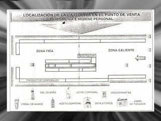 • 1. Lalocalización de la categoría en el punto de venta: productos corporales: • El resultado global de los criterios de localización que posee la categoría de productos corporales, se aconseja una ubicación en la zona mas fría y profunda del establecimiento. Aspectos a tener en cuenta para gestionar adecuadamente las categorías de productos en el punto de venta