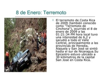 El documento resume los eventos más importantes que ocurrieron en 2009, incluyendo un terremoto en Costa Rica en enero, la toma de posesión de Barack Obama como presidente de EE.UU., eclipses solares y lunares, viajes del Papa Benedicto XVI, la gripe AH1N1 declarada pandemia, el Barcelona ganando la Champions League, y el 40 aniversario del alunizaje del Apolo 11.