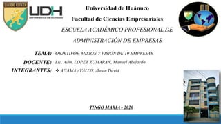 TEMA: OBJETIVOS, MISION Y VISION DE 10 EMPRESAS