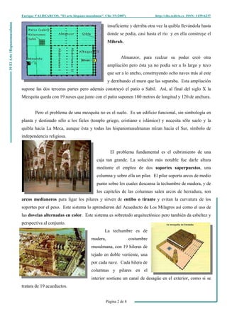 Este documento resume el arte hispano-musulmán en tres periodos: el cordobés (siglos VIII-XI), el intermedio de los reinos taifas y almorávides/almohades (siglos XI-XIII), y el nazarí en Granada (siglos XIII-XV). Destaca la Mezquita de Córdoba como ejemplo máximo del periodo cordobés y la Alhambra de Granada del periodo nazarí, con su arquitectura palaciega decorada con motivos geométricos como atauriques y lacerías.