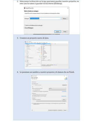El documento describe un informe de una práctica de programación realizada por un estudiante. El objetivo era desarrollar su primer programa en Eclipse para calcular la tabla de multiplicar de un número ingresado por el usuario. Las actividades incluyeron crear un proyecto en Eclipse, utilizar bucles y sentencias para ingresar datos, realizar cálculos y mostrar resultados. El estudiante explica los pasos seguidos y muestra el código Java utilizado para solicitar el número, realizar la multiplicación mediante un bucle for e imprimir la tabla.