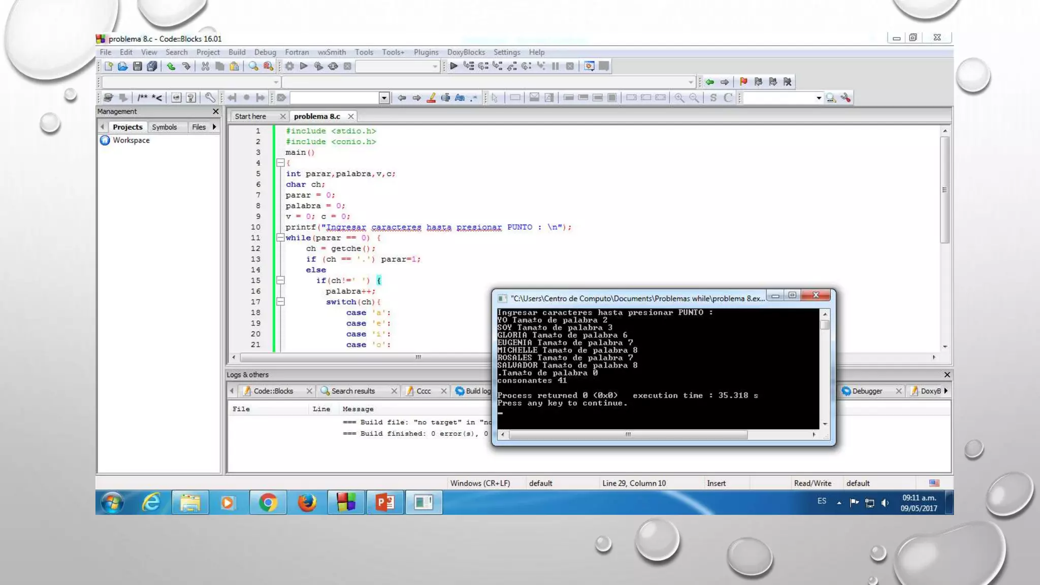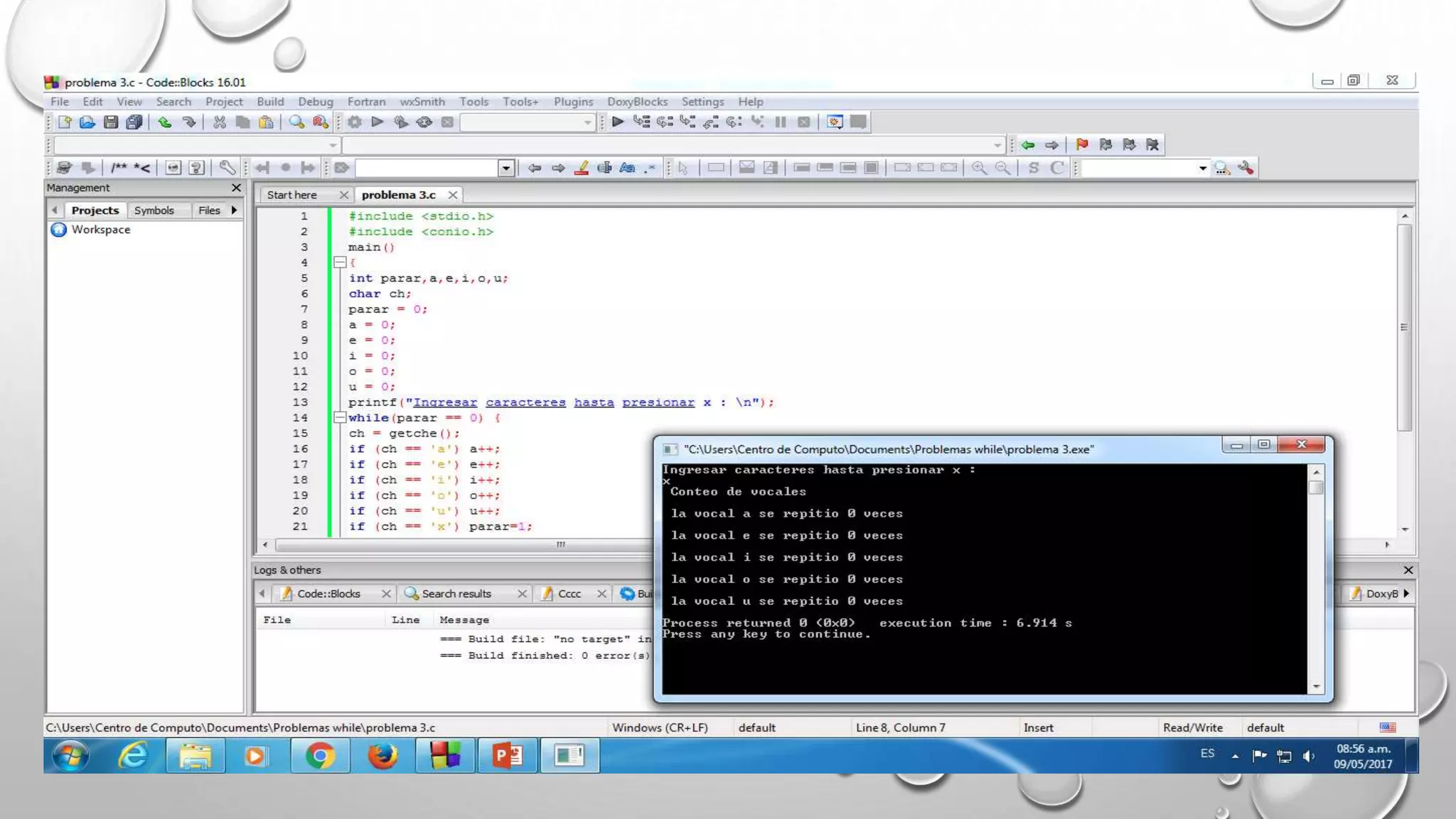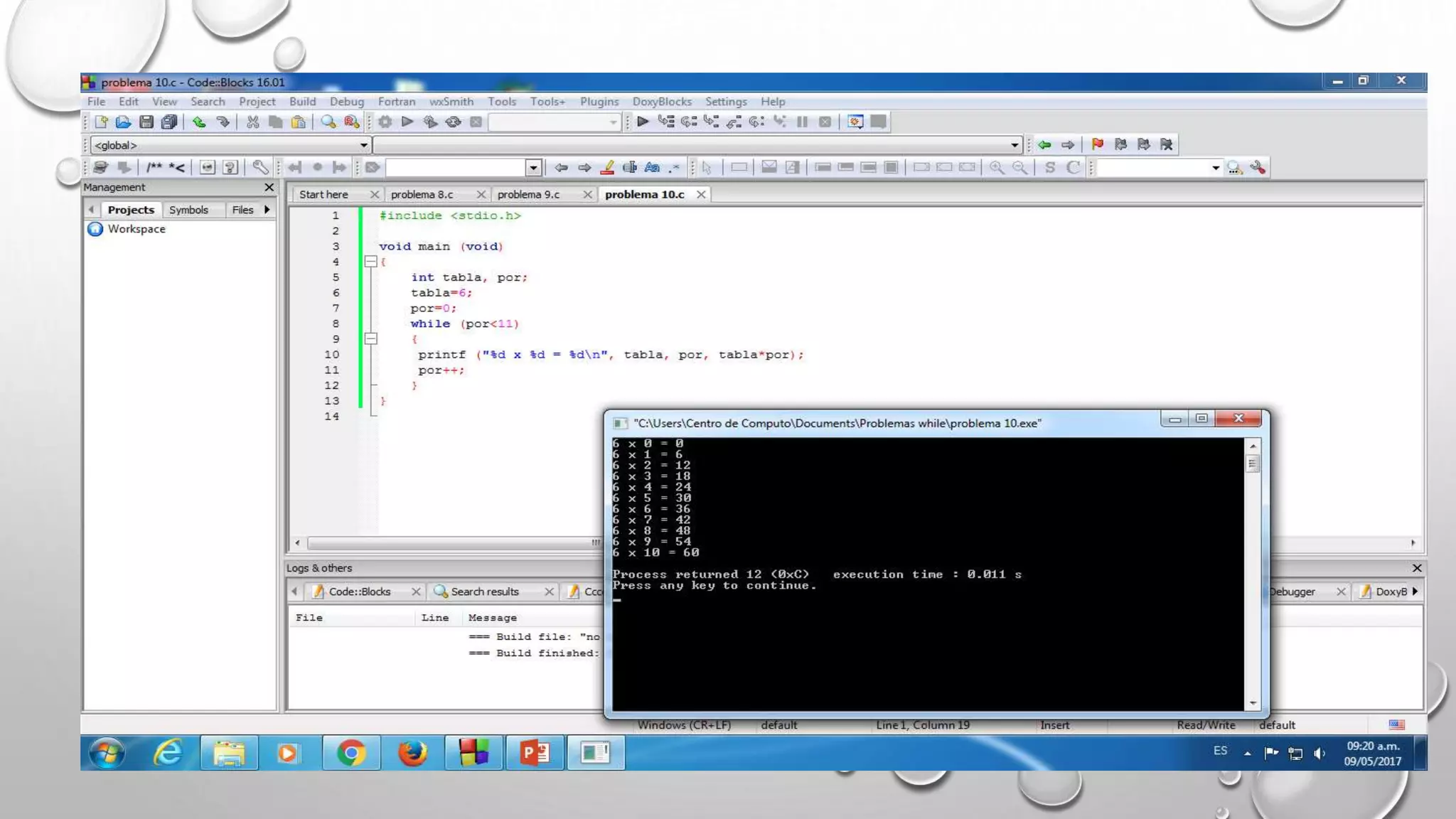 Este documento contiene resúmenes de varios programas de computadora desarrollados en C para realizar tareas matemáticas y lógicas como contar vocales, determinar si un número es par o impar, calcular promedios, mostrar tablas de multiplicar y factoriales. Cada programa incluye las bibliotecas, variables y pasos necesarios para obtener los datos de entrada, realizar los cálculos y mostrar los resultados.