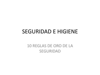 La seguridad y la higiene son extremadamente importantes. Este documento presenta 10 reglas básicas de seguridad que pueden salvar vidas, como usar equipo de protección personal, no distraerse en el trabajo, y seguir las instrucciones y señales de seguridad.