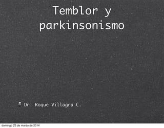 Este documento proporciona información sobre el temblor y el parkinsonismo. Define el temblor y clasifica los diferentes tipos. Luego describe los criterios diagnósticos del temblor esencial clásico y discute la edad de comienzo, distribución anatómica, genética y fisiopatología del temblor esencial. También cubre las opciones terapéuticas para el temblor esencial como los bloqueadores beta, la primidona y las benzodiazepinas. Finalmente, analiza la enfermed
