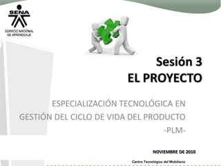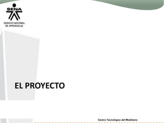 El documento describe las cuatro fases de un proyecto de diseño de productos bajo la estrategia de gestión del ciclo de vida del producto (PLM): análisis, planeación, ejecución y evaluación. Cada fase incluye actividades y resultados de aprendizaje relacionados con el diseño y desarrollo de mobiliario de oficina. El proyecto se enfocará en el diseño de mobiliario para oficinas pequeñas o de teletrabajo.