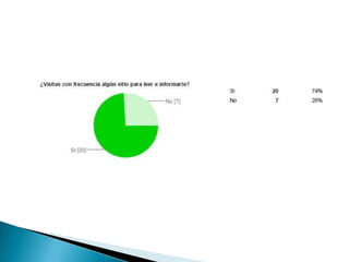 Este documento propone crear un blog para mejorar la competencia de lectoescritura de estudiantes a través de herramientas web como los blogs. El objetivo general es crear un espacio virtual para producir y compartir material textual de interés común. Los objetivos específicos incluyen identificar distracciones en la web, proponer un modelo corto para la lectura usando herramientas web, y generar ingresos a través de publicidad para sostener el blog.