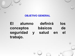 El documento presenta conceptos básicos de seguridad e higiene industrial. Explica que la seguridad organizada se hizo necesaria con la Revolución Industrial debido a las malas condiciones de trabajo. A lo largo de la historia se han creado ordenamientos en México para regular la seguridad. Define conceptos como peligro, riesgo, accidente, incidente, enfermedad laboral e incapacidad. Finalmente, explica que la salud en el trabajo busca preservar la integridad física y mental de los trabajadores.