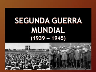 La Segunda Guerra Mundial comenzó en 1939 y terminó en 1945. Fue causada por las ambiciones territoriales de Alemania, Italia y Japón y el fortalecimiento de los regímenes totalitarios como el nazismo y el fascismo. El Eje, conformado por estas potencias, invadió varios países europeos. Eventualmente, los Aliados derrotaron a las potencias del Eje. La guerra causó aproximadamente 55 millones de muertes y destruyó ciudades. Terminó con la creación de Naciones Unidas para prevenir futuros conflictos