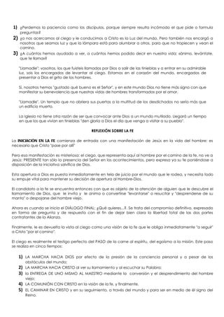 1) El relato bíblico narra la curación milagrosa de Jesús al ciego Bartimeo. 2) Bartimeo representa la miseria y desesperanza humanas, así como una ceguera espiritual e intelectual. 3) La curación muestra la necesidad de tener una nueva visión para comprender el seguimiento a Jesús y el amor por los pobres.
