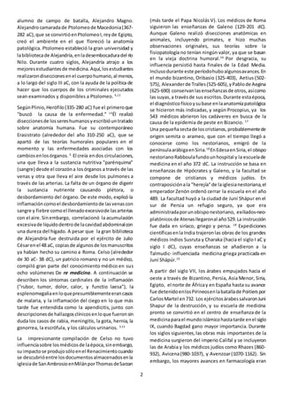 Este documento resume la historia de la autopsia desde la antigüedad hasta la Edad Media. Explica que los primeros conocimientos anatómicos provenían de la observación de animales, y que los egipcios y griegos realizaron algunas disecciones humanas. Herófilo y Erasístrato llevaron a cabo importantes disecciones en Alejandría en el siglo III aC. En la Edad Media, los médicos árabes preservaron y expandieron los conocimientos anatómicos de griegos y romanos. La escuela