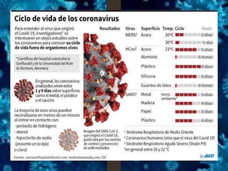 El documento describe los coronavirus, incluyendo el Covid-19. Explica que los coronavirus son una gran familia de virus que pueden causar enfermedades en humanos y animales, desde el resfriado común hasta enfermedades más graves. Describe las características del Covid-19, su epidemiología, síntomas, diagnóstico, tratamiento y prevención.